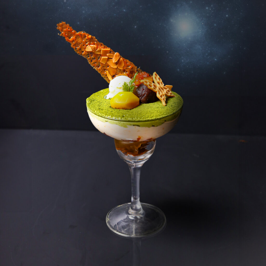 A graceful Japanese-style parfait crafted with luxurious matcha. The rich matcha ice cream and mousse create a perfect harmony of bitterness and depth, enveloped gently by the sweetness of azuki beans and chestnuts. The refreshing touch of yuzu jelly adds brightness, while the finishing drizzle of kuromitsu brings it all together in seamless harmony. Delight in the seasonal beauty of Japan through this exquisite dessert.